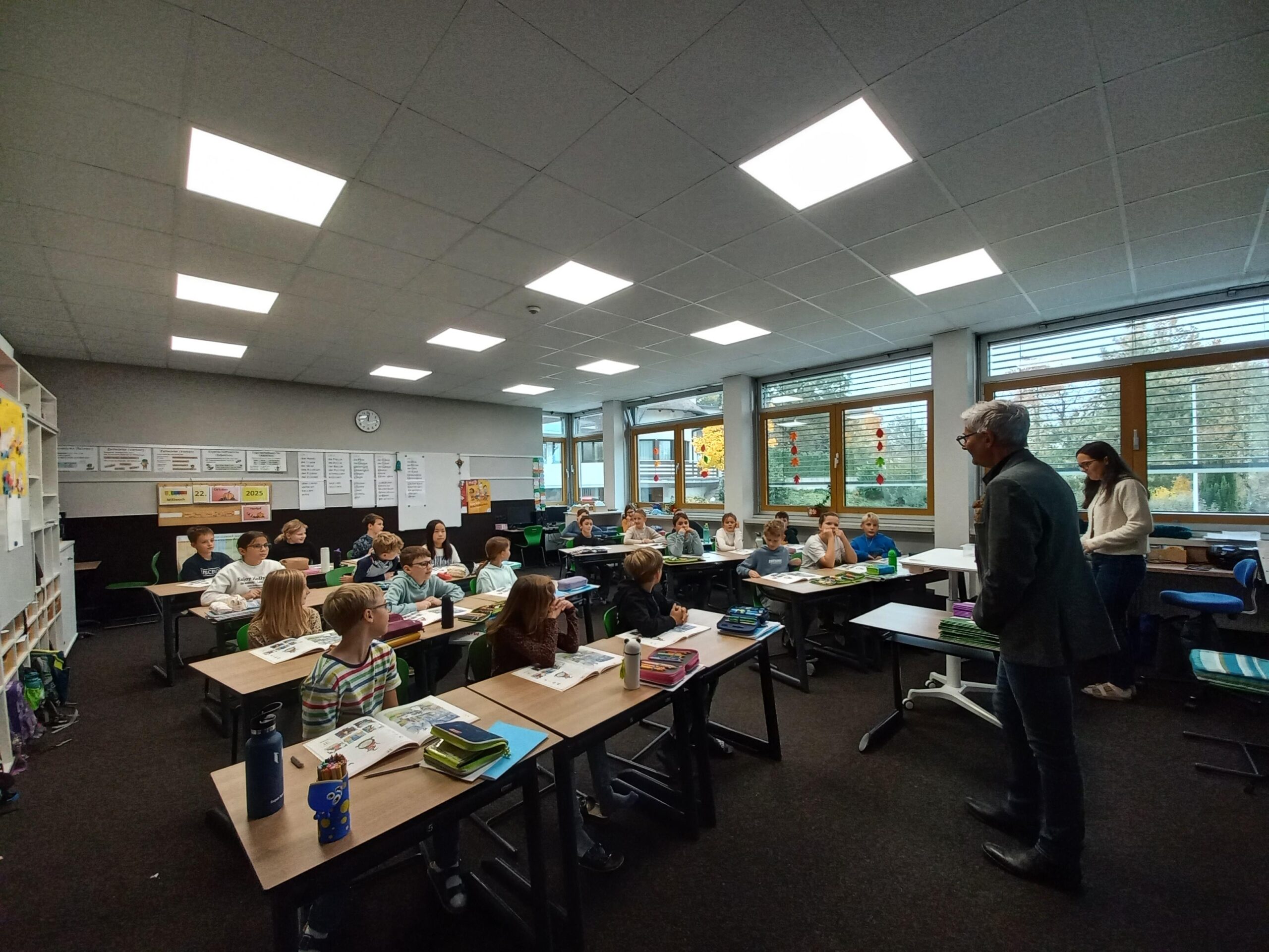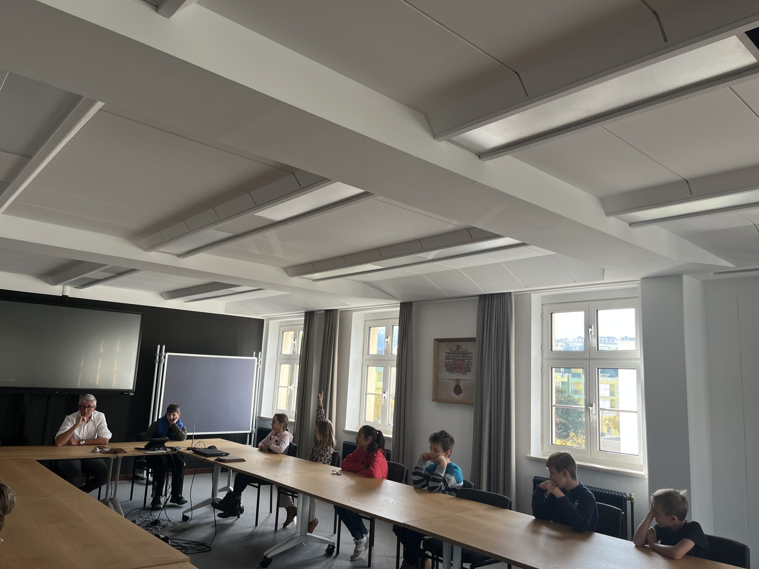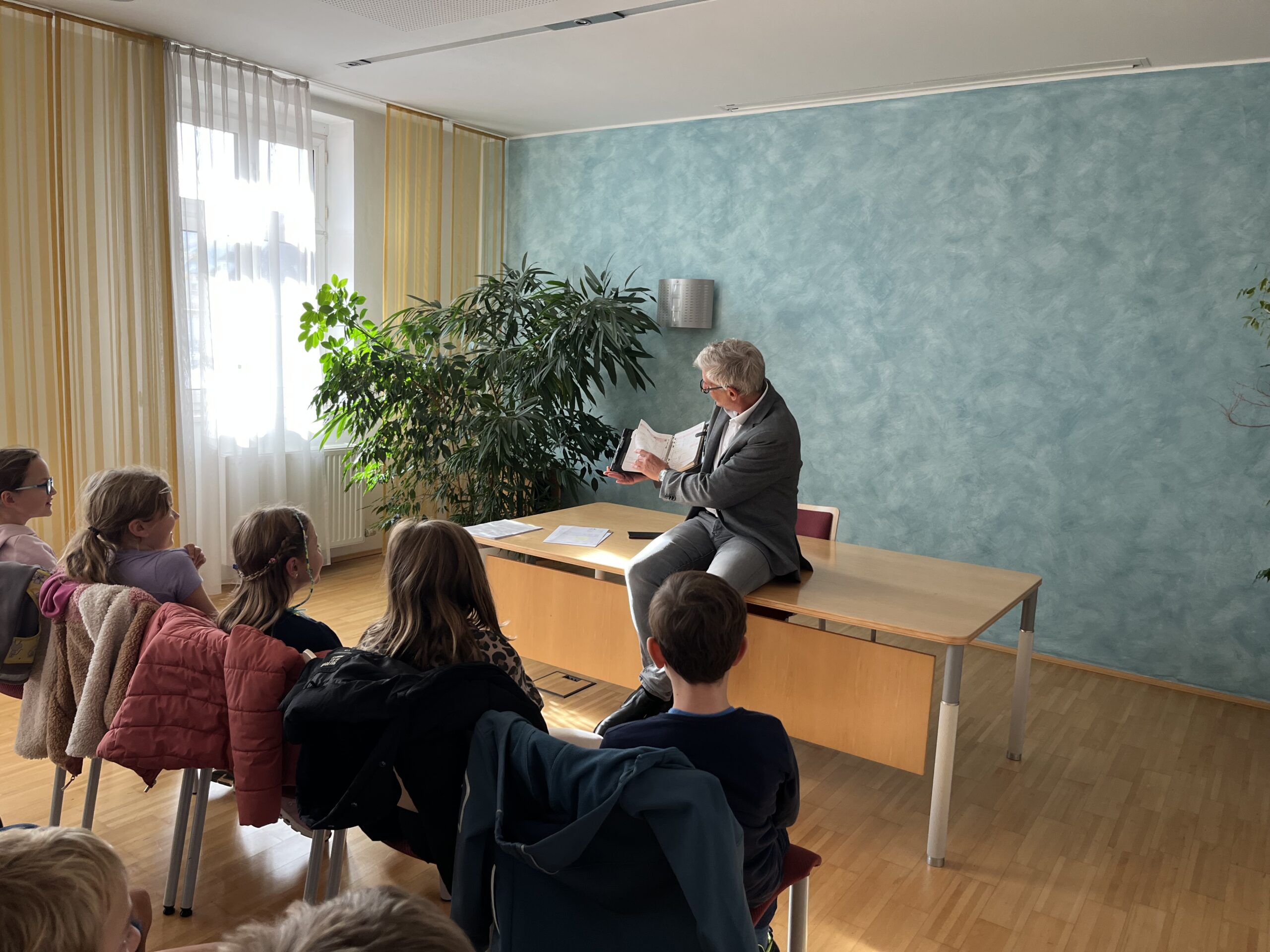 Außerdem durften die Kinder viele Fragen stellen, die der Bürgermeister seinen interessierten Zuhörerinnen und Zuhörern geduldig beantwortete.