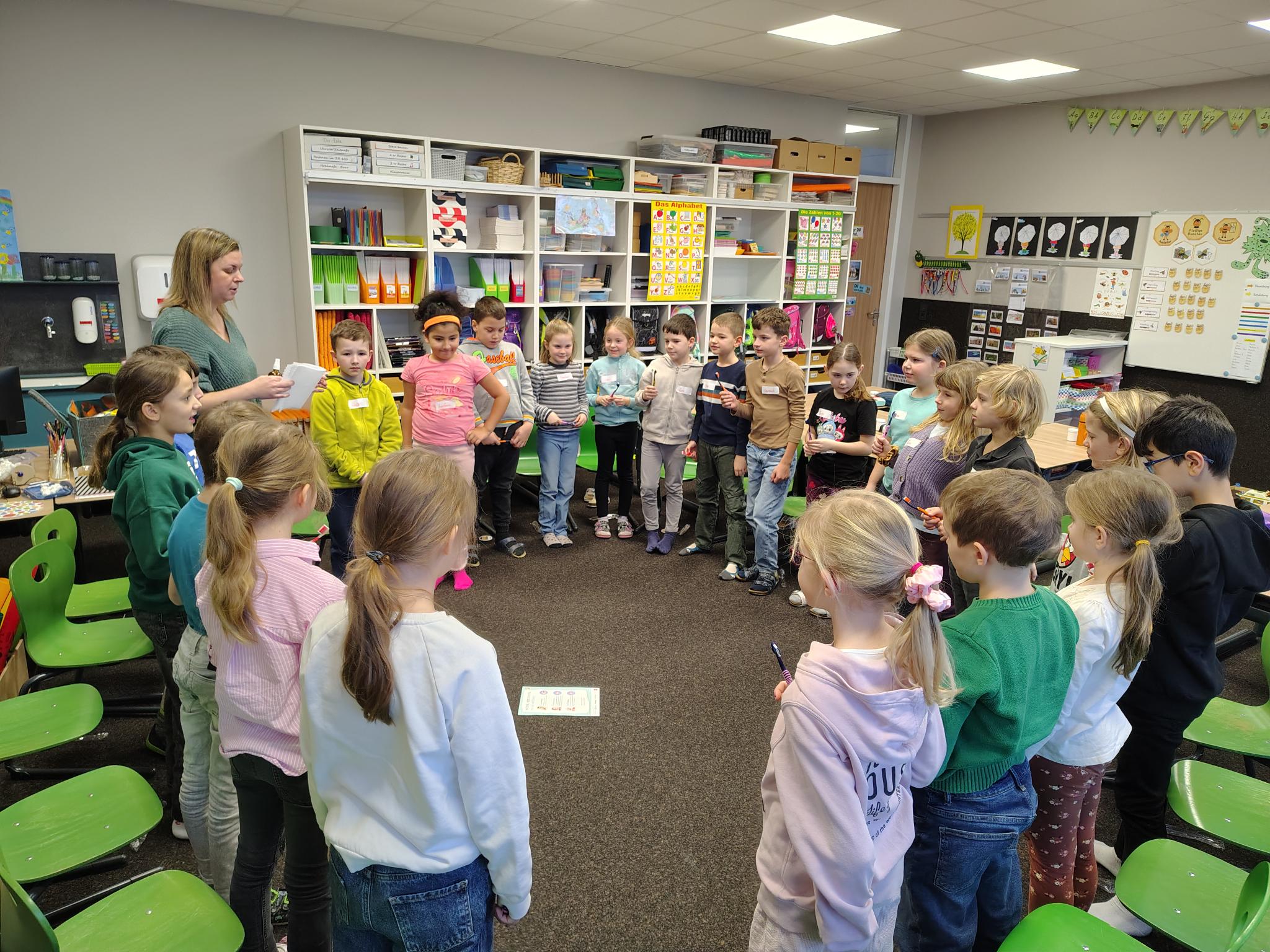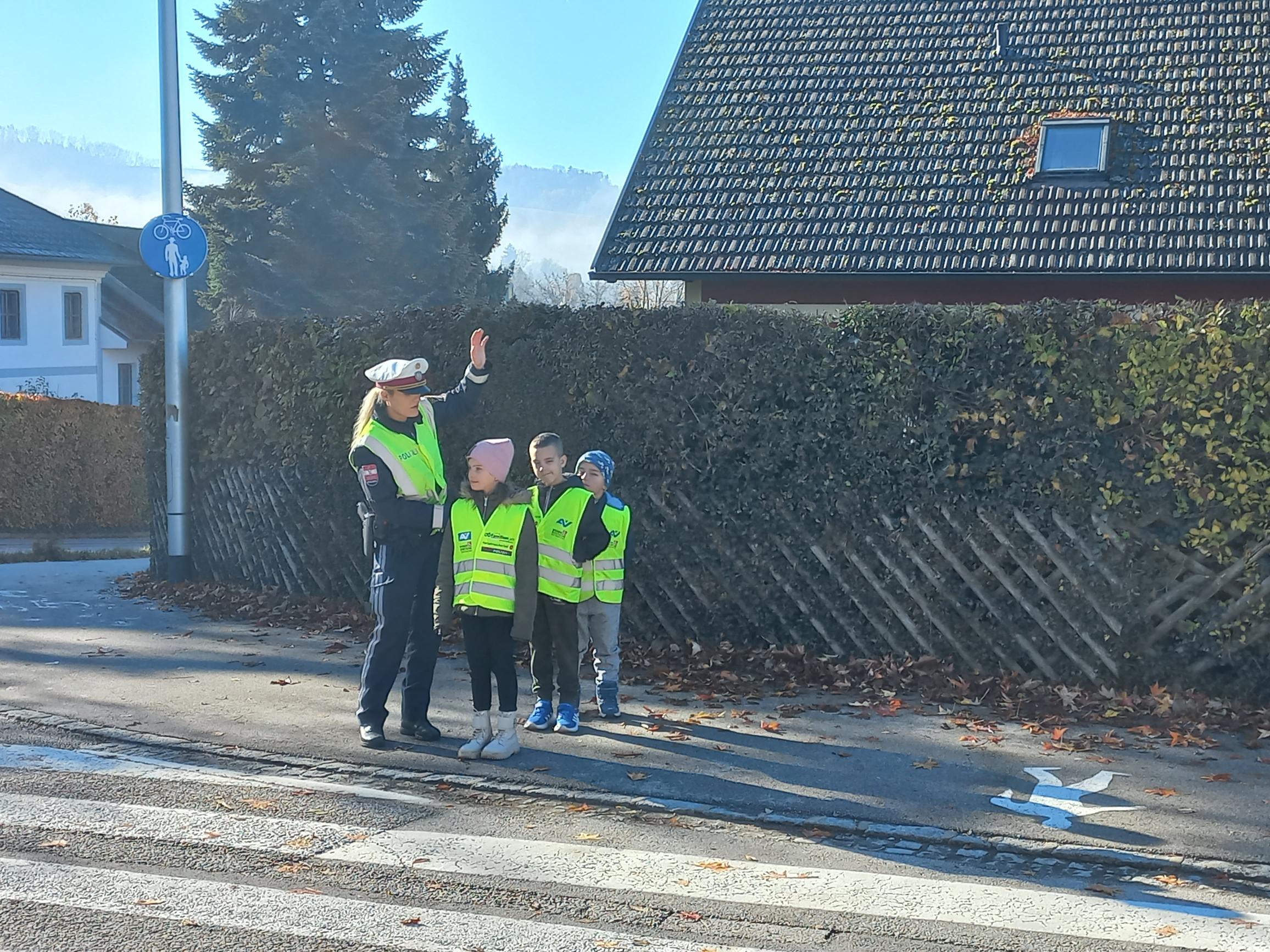 Nach den Herbstferien durften sich die 2. Klassen über den Besuch der Polizistin freuen. Gemeinsam wurden das richtige Verhalten im Straßenverkehr und auf dem Gehsteig wiederholt sowie das sichere Überqueren der Straße praktisch geübt. Außerdem wurde auf die besondere Wichtigkeit der Warnwesten in der dunklen Jahreszeit hingewiesen – und wir hoffen, diese auch regelmäßig an den Kindern zu sehen.