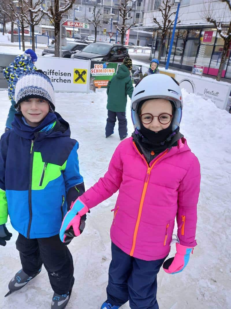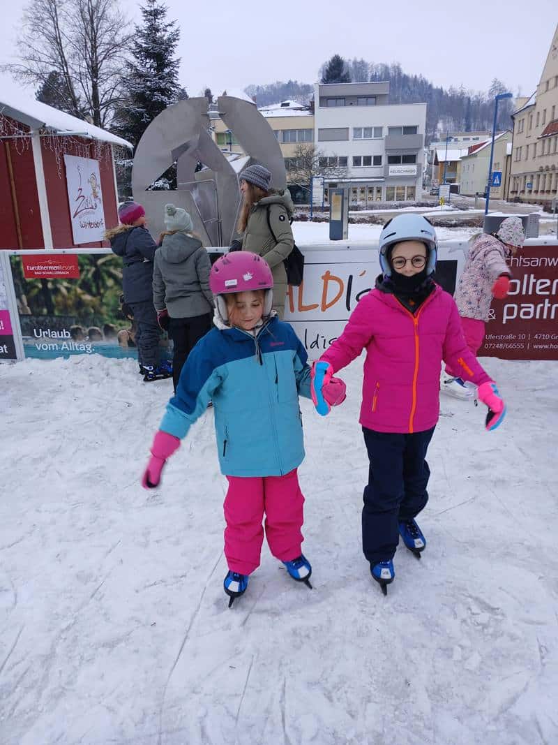 Ein besonderes Wintererlebnis durften unsere Schülerinnen und Schüler der 2b genießen: Gemeinsam ging es zum Eislaufen! Mit roten Wangen, strahlenden Augen und viel Begeisterung drehten die Kinder ihre Runden auf dem Eis. Ob Anfänger oder kleine Profis – alle hatten großen Spaß und unterstützten sich gegenseitig. Einen großen Dank an die Gemeinde, die die Eislauffläche zur Verfügung stellte und die Mamas, die uns begleiteten und mit warmen Tee versorgten.